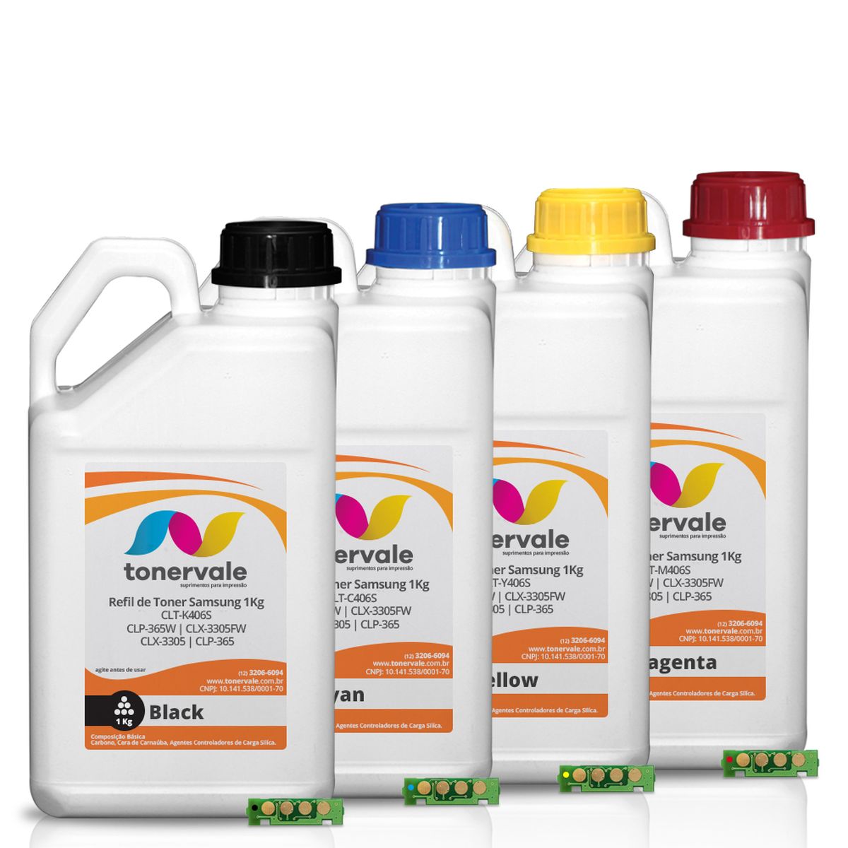 Agora você pode imprimir o quanto quiser sem se preocupar com quanto vai gastar com cada impressão, o Kit 4 Refil de Toner + 73 Chip Samsung CLT-406S CMYK - CLP-365W CLX-3305FW CLX-3305 CLP-365 de 1kg tem autonomia para imprimir até páginas, com seu alto rendimento e qualidade gráfica para impressão de textos e imagens, além disso você conta com nosso suporte para recarga com mais de 200 vídeos recargas noyoutube. Aproveite, faça você mesmo.
