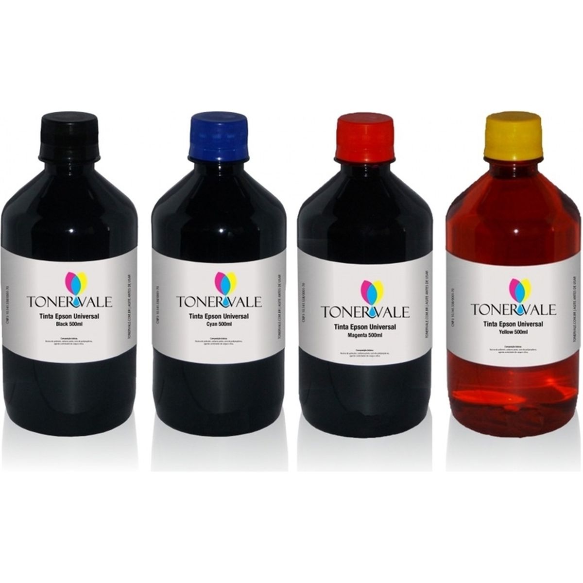 Kit 4 Tinta Para Bulk Ink Epson Universal Corante CMYK de 500ml